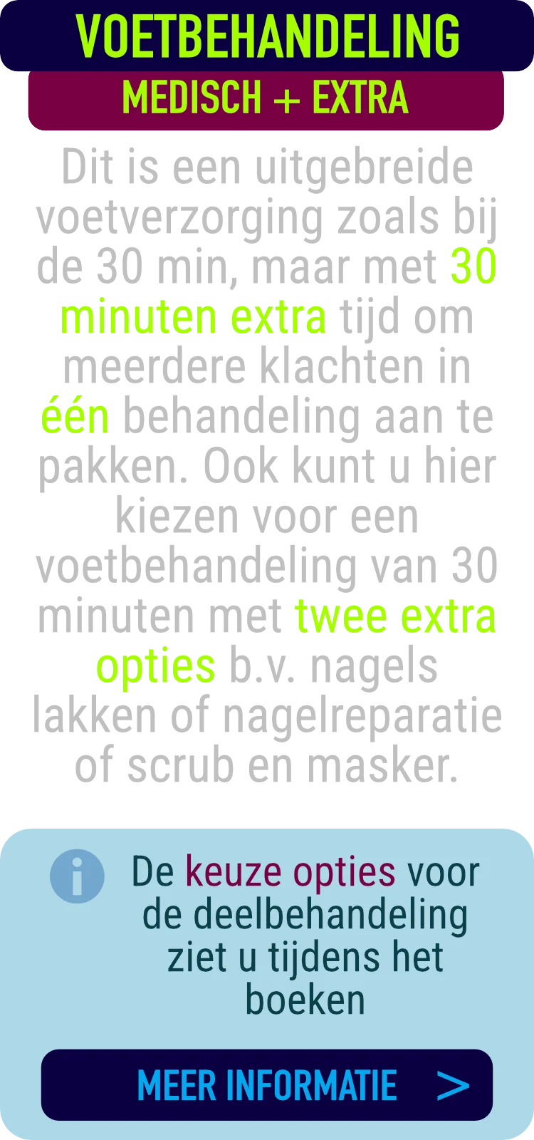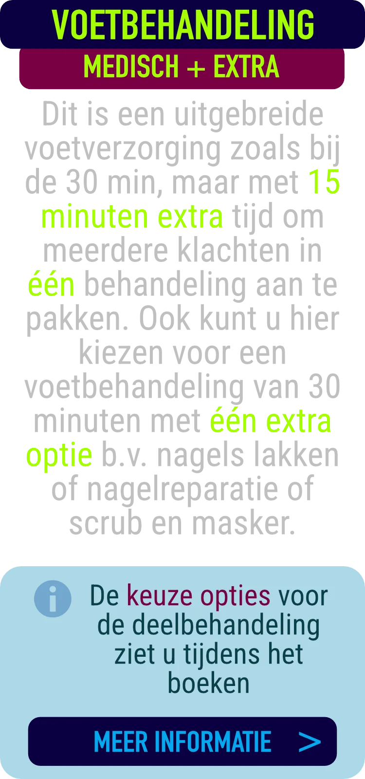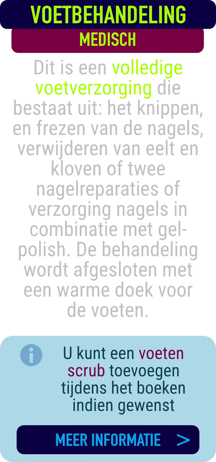Medisch Pedicure voor de behandeling van pathologisch eelt, nagels knippen, likdoorn, ingegroeide nagel, schimmel nagel, nagel reparatie, nagelbeugel, nagels lakken of gellak